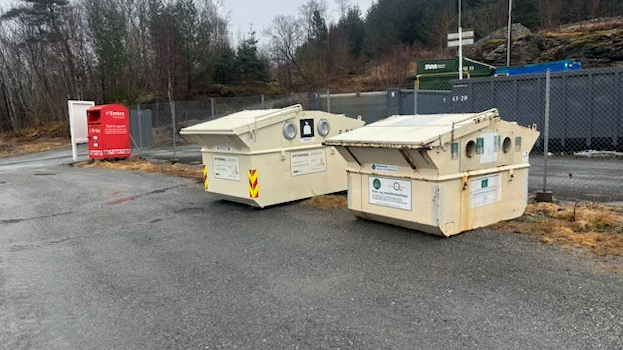 Hytterenovasjon og konteiner for levering av kle som tidlegare stod ved rådhuset i Askvoll sentrum er flytta til Olsetvikane, på utsida av gjenvinningsstasjonen.