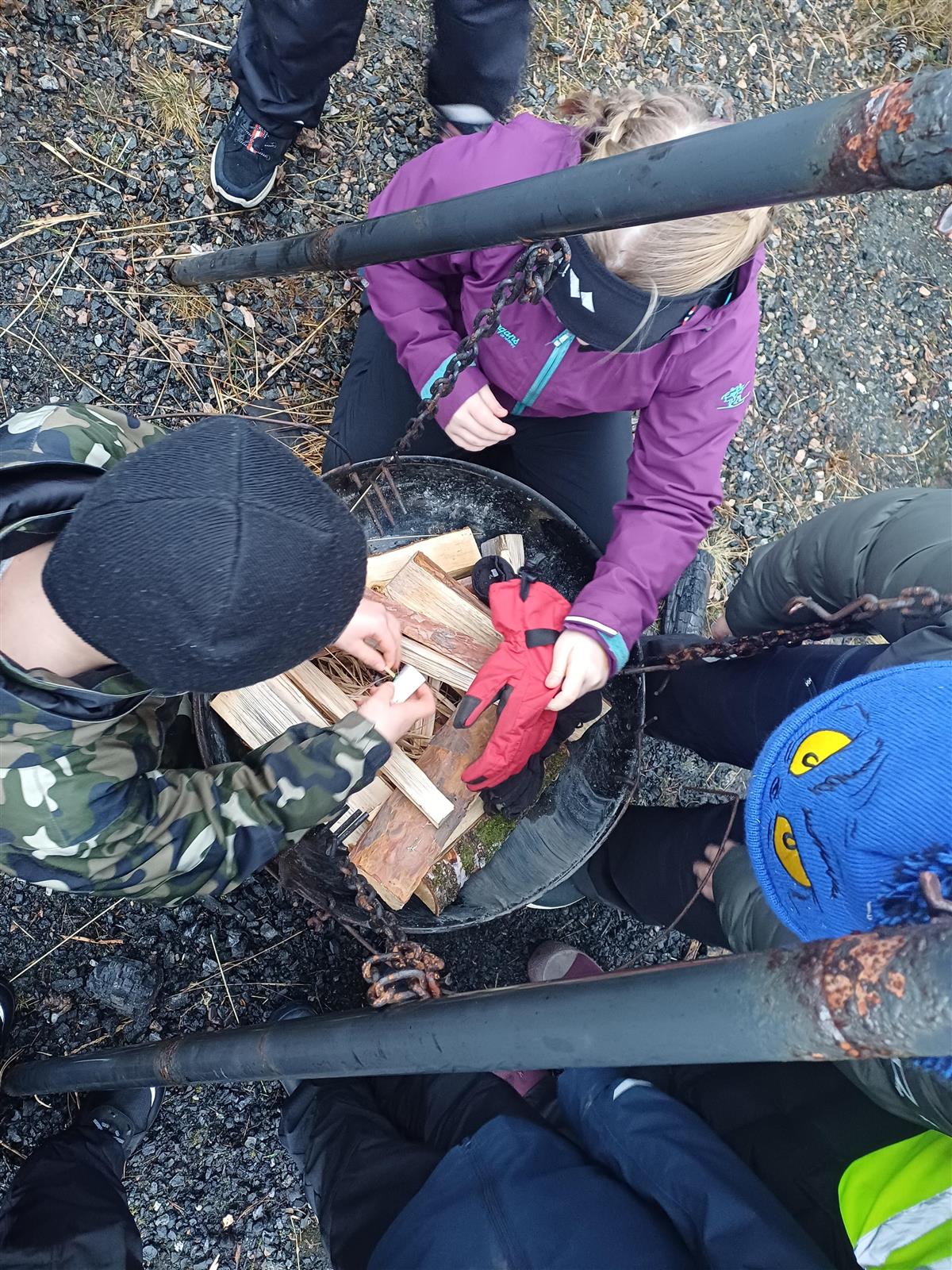 Først hadde 5. -7. klasse bålkurs. Dei lærte korleis ein skal bygge opp eit bål, og fekk ei fyrstikk til å tenne med. 7. klasse-gjengen hadde laga klart til gryte, som ein varma på bålet og serverte. Etter lunsj var det 2. -4. klasse sin tur. No var båla tente, så dei lærte mykje om tørr ved, sløkking av bål og fotosyntesen. “Høgt engasjement og nysgjerrige elevar, veldig moro”, var tilbakemeldinga frå Ruben! Tusen takk for besøket, dette var andre året på rad med besøk, så no vonar vi at dette er ein tradisjon. Uansett, velkommen tilbake