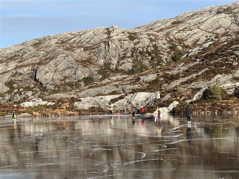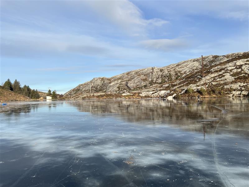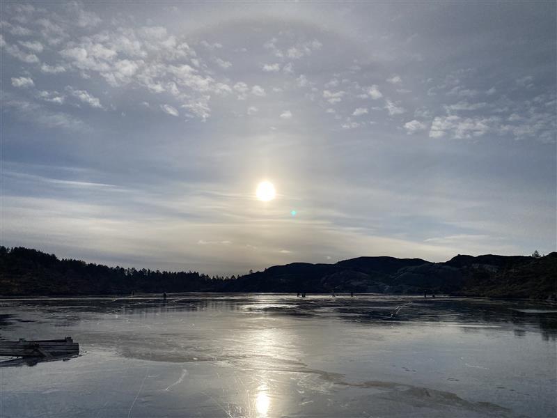 Etter innspel frå foreldre tok vi turen til Laukelandsvatnet. Her var det 30 cm tjukk is og flotte forhold. Sola skein og varma. Vi kosa nok ein gang på skøyter.