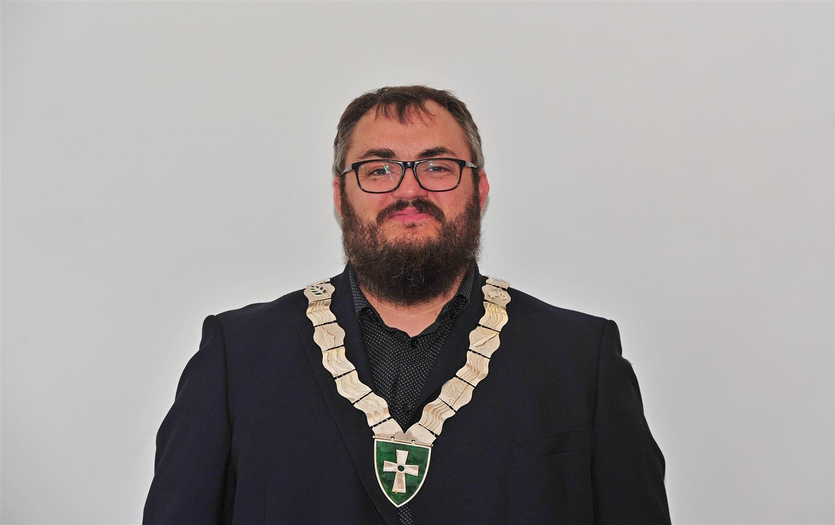 Portrettfoto av ordførar Ole André Klausen frå Høyre med ordførarkjede - Klikk for stort bilete